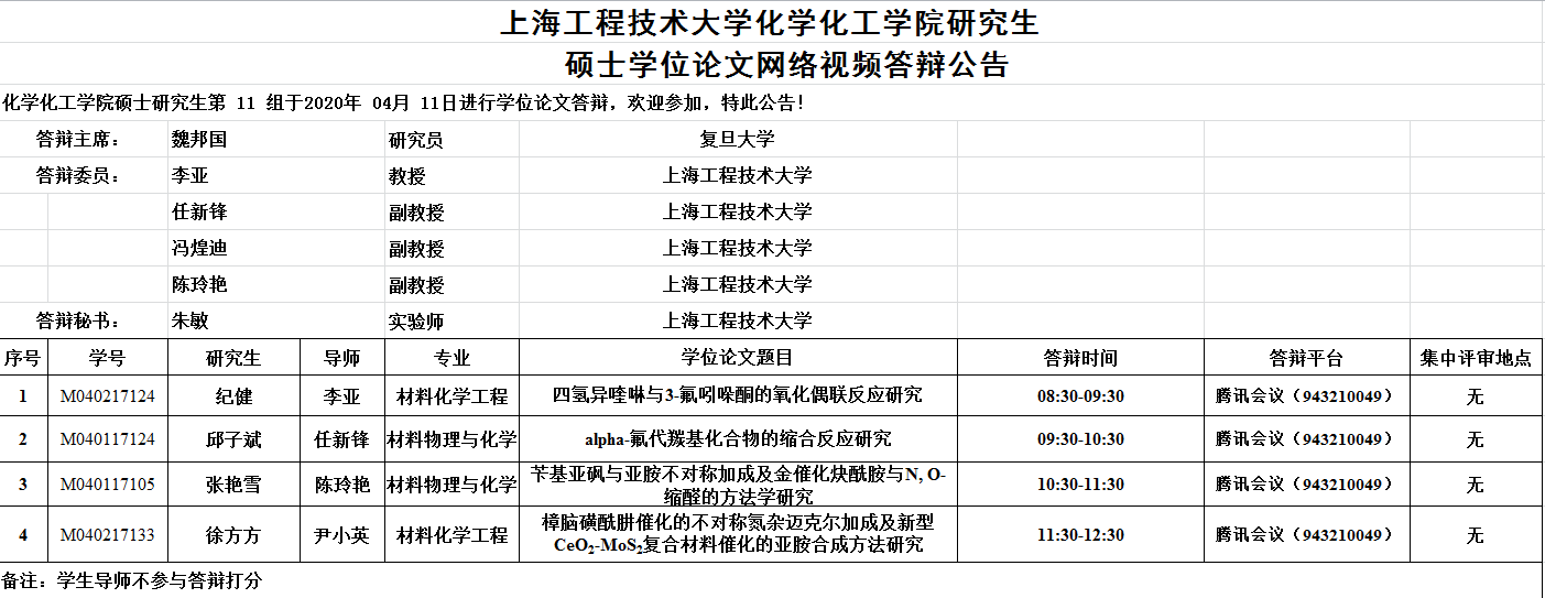 太阳成集团tyc151cc太阳成集团tyc151cc研究生硕士学位论文网络视频答辩公告-4月11日第11组