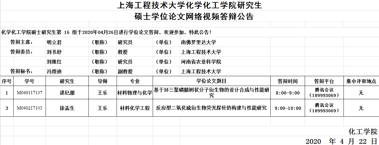 太阳成集团tyc151cc太阳成集团tyc151cc研究生硕士学位论文网络视频答辩公告-4月26日第16组