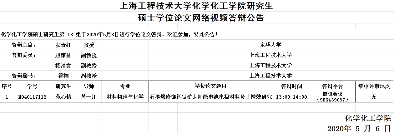 太阳成集团tyc151cc太阳成集团tyc151cc研究生硕士学位论文网络视频答辩公告-5月8日第18组