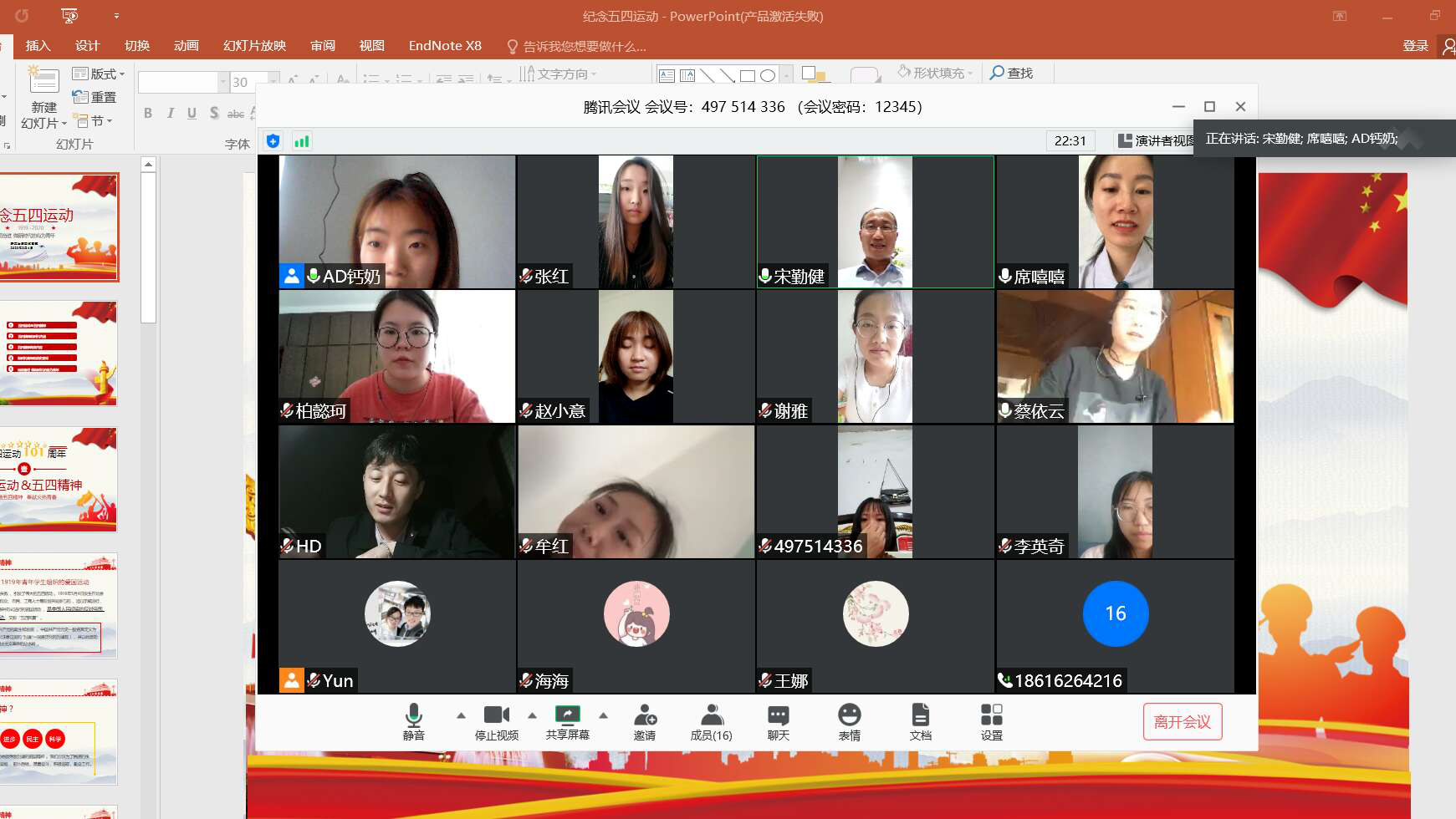 为纪念五四运动、弘扬五四精神、加强思想教育,提高党员对“爱国、进步、民主、科学”的五四精神的追求。5月4日下午,研究生第四党支部利用腾讯会议APP开展了线上 “纪念五四运动”主题党日活动。公司党委书记宋勤健,副书记秦颖及支部全体党员等17人参与了此次主题党日活动。