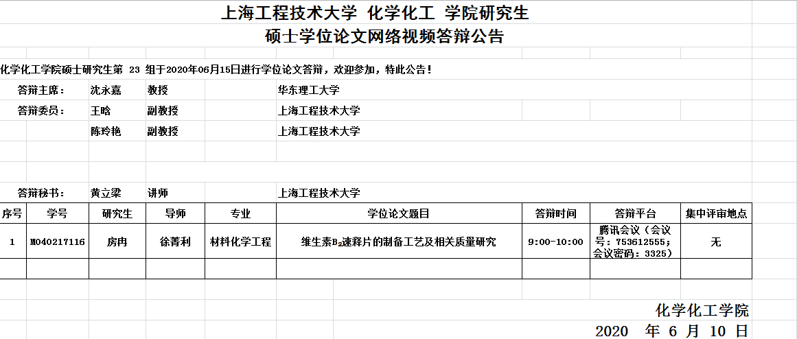 太阳成集团tyc151cc太阳成集团tyc151cc研究生硕士学位论文网络视频答辩公告-6月15日第23组