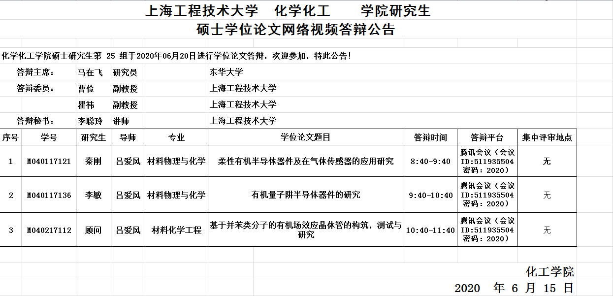 太阳成集团tyc151cc太阳成集团tyc151cc研究生硕士学位论文网络视频答辩公告-6月20日第25组