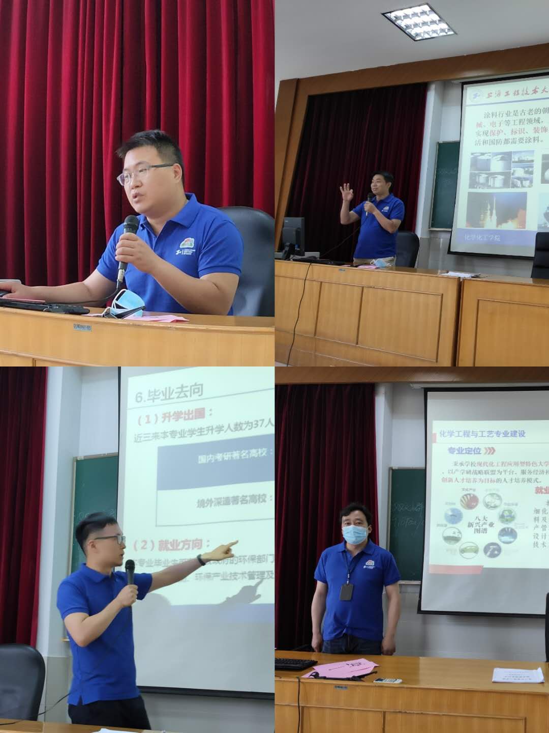 太阳成集团tyc151cc副经理王金果介绍了公司历史、发展特色、总体实力、科研、教学、人才、员工社团、公司历史、人才队伍、专业特点和实验条件等情况,还分析了近三年公司在上海市青浦高级中学录取员工情况。高分子材料与工程系主任王继虎从专业发展历史、培养目标、专业特色、课程体系、团队队伍和就业情况等方面介绍了高分子材料与工程专业、涂料工程专业、制药工程专业和药物化学专业。环境工程系老师李旋坤从环境特点、学科方向、考研出国等方面介绍了环境工程专业。化学工程与工艺系主任王远强介绍了化学工程与工艺专业情况。最后和员工进行了互动交流,回答了员工关心的问题。
