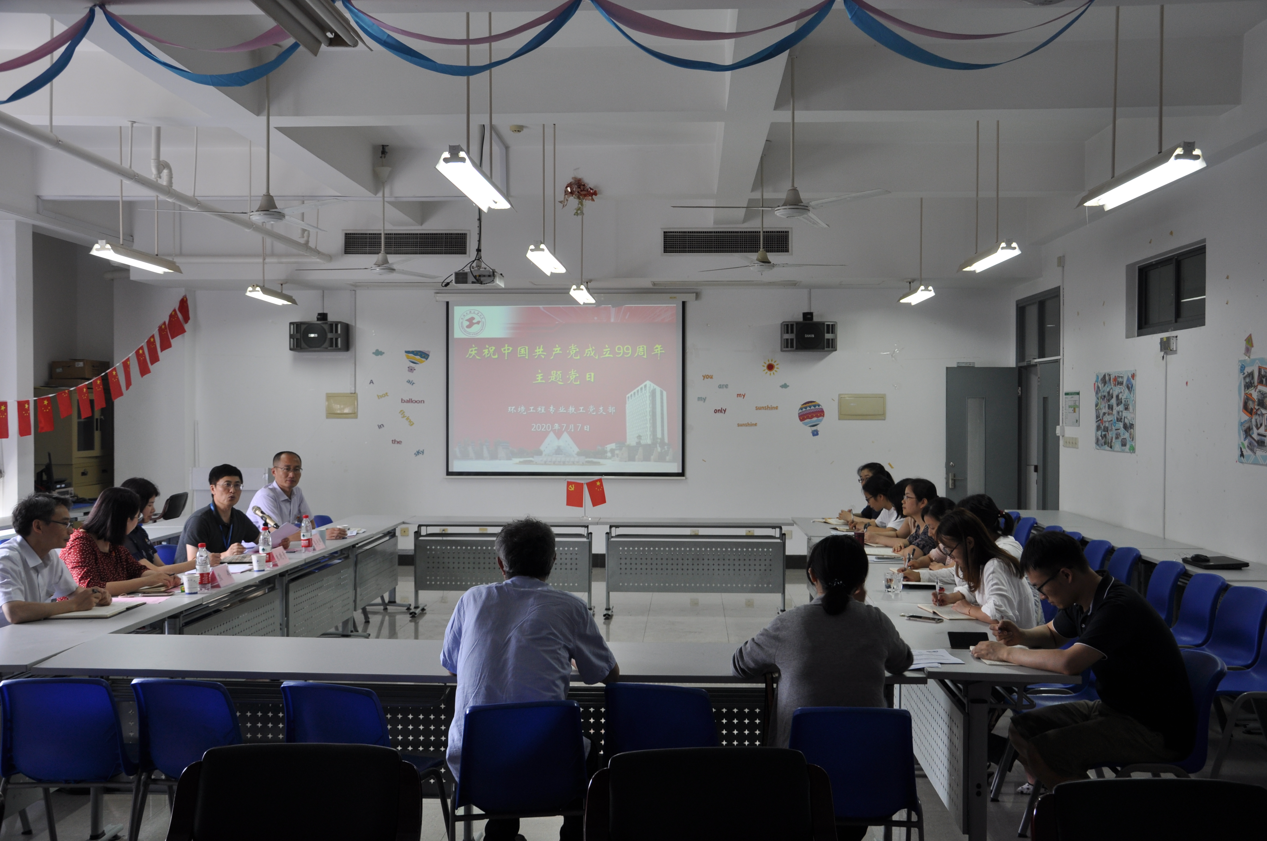 太阳成集团tyc151cc党委环境工程专业教工党支部于2020年7月7日中午12:30在实训楼4405开展了庆祝中国共产党成立99周年主题党日。会议由支部书记胡婷莛同志主持,公司党委副书记、副董事长朱晓青,党委组织员熊伟,公司党委书记宋勤健,公司党委副书记、经理饶品华,李光辉教授和支部全体党员同志参加。