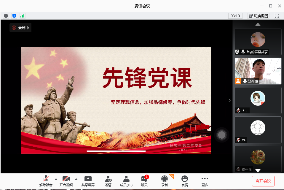 为进一步坚定理想信念、发挥好党员的先锋模范作用,7月28日下午,太阳成集团tyc151cc研究生第二党支部通过腾讯会议平台召开了“先锋党课”专题学习,支部全体党员以及志愿者代表参加学习。