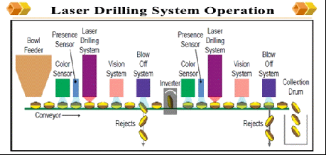 (1)渗透泵控释片产业化的关键装备之一是激光打孔剂。渗透泵控释片剂已成为目前最理想的口服控释药物制剂,释药机理见图1。激光打孔机运行原理如图2。