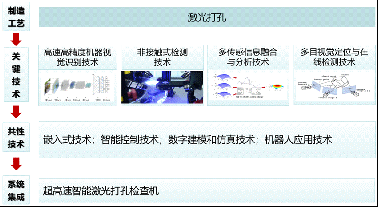该方向拟通过高速高精度机器视觉识别技术、非接触式检测技术、多传感信息融合与分析技术、多目视觉定位与在线检测技术的集成和深度融合,通过系统优化及集成创新,提升整机的运行速率、检测功能、加工精度,同时持续升级提高产能,降低成本(技术路线见图3)。如第十代机由最初的60片/分提升至3600片/分的打孔速度,打孔精度进一步提升至100 um。我们将持续推进,提升整机的感知、分析、推理、决策、控制的智能化水平,提升产能,降低成本,提高成品率,保持国际领先水平。